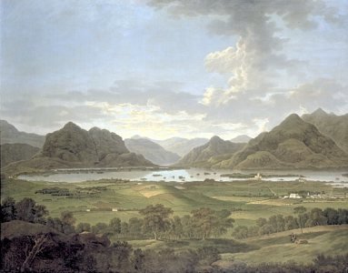 Thomas Roberts was the most sought-after painter of his time, and he displayed his mastery at a very young age. This was fortuitous, for he died of consumption at age 29 in 1778 having not finished a six-painting commission by the Duke of Leinster of scenes from his Carton demense. What Roberts left behind was not photographic realism but an idealism fully grounded in reality. The horizon lines, the patterns of the sky, the shape of hills, the contours of grass and rivers, and even the humans inserted into the scenes and depicted as working or strolling all seem to be just where they should be, as if the perfect moment that could occur in the location had been captured.