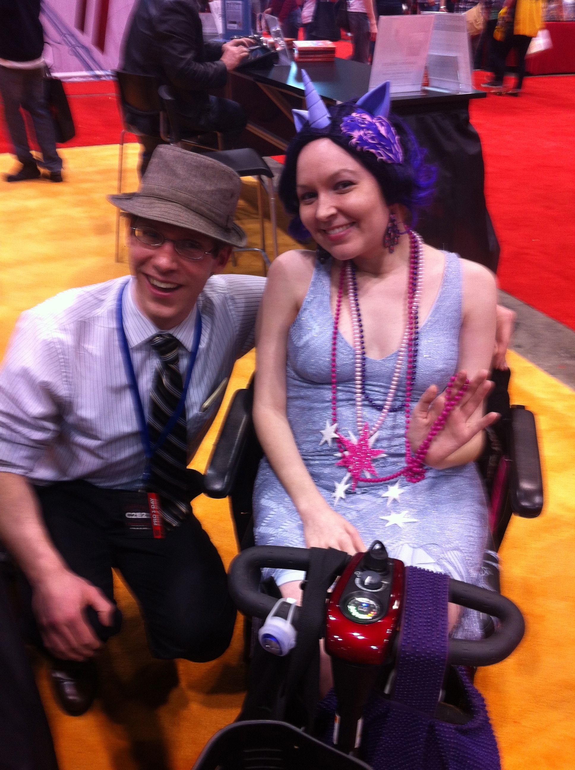 I’ve known Jill Pantozzi (her name is her twitter handle) since 2011, and she is one of those people who fill your spirit with delight every time you see them. Jill has spent her life writing about pop culture, mostly comics and sci-fi/fantasy media, for a variety of websites, and in everything she does, she brings the analytical insight of an expert and the passion of someone who loves even the most infinitesimal minutiae (yes, minutiae THAT small) of her chosen subjects. And she does it all from a motor scooter due to her muscular dystrophy. Every single time I read about the continuing misogyny against and harassment of female comics and genre fans (and you all know my reaction), I think of Jill. She is living proof of what idiots they are.