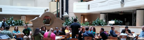 Gen Con is the kind of gathering that about gathering and interacting. It’s hard to have a tabletop gaming convention without loads of social interaction; no matter the level of introversion amongst the 56,000+ attendees, interaction is required for gaming. When talking to the Golem Arcana emissaries, for example, it turns out that the Chicago rep was a good friend of one of the other editors for the Recorder. One of our group members ran into an old GM from college he hadn’t talked to in forever. And I had people I met at previous Gen Cons who couldn’t attend this one following along with our exploits via Facebook or Twitter.