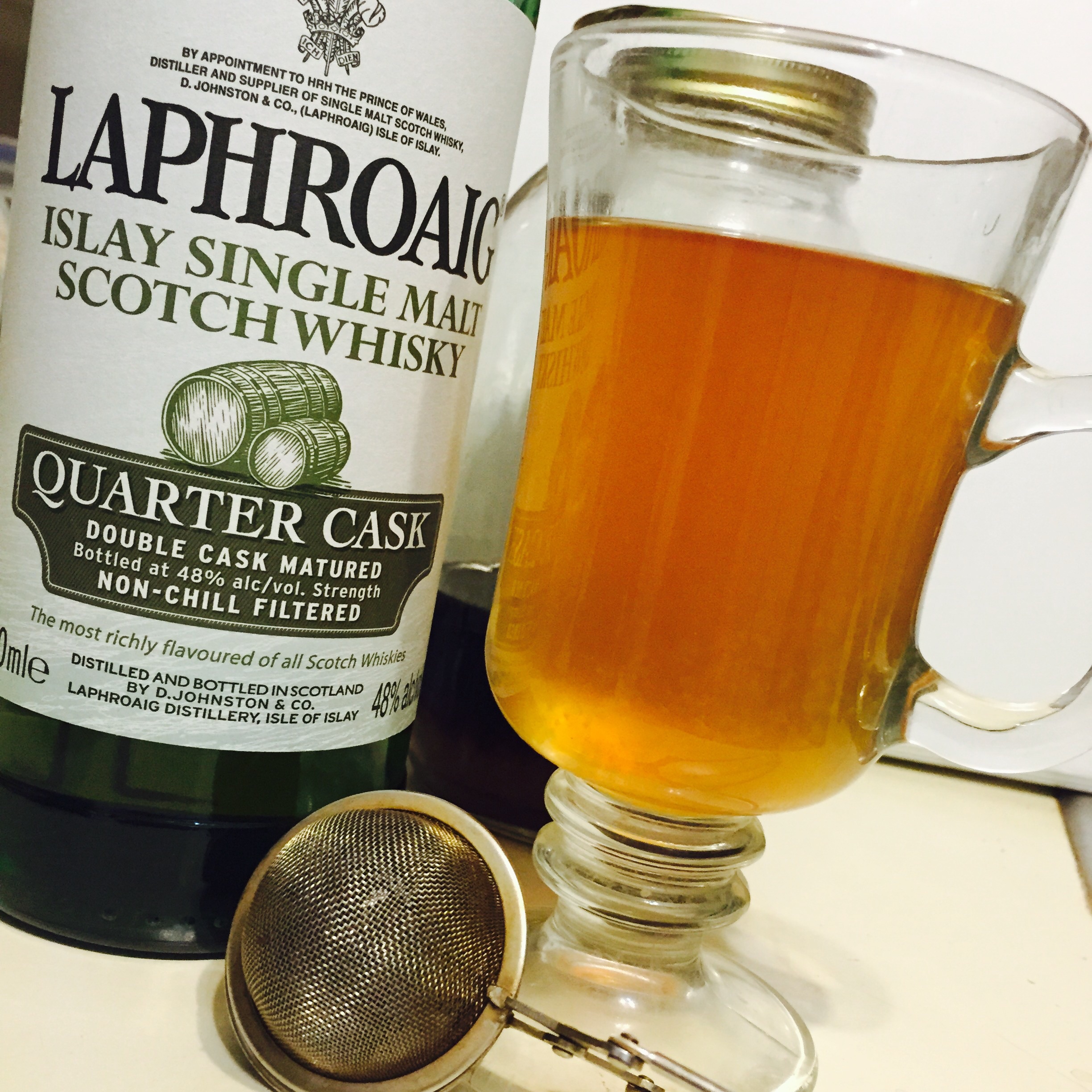- 1½ oz — scotch (Black Grouse or Laphroaig)
