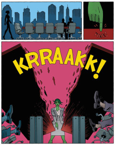 -J.: Oh, and Javier Pulido’s art and layout is brilliant. I was initially skeptical of his style, but as I read through the series, I was intrigued by the ways he played with the conventions of layout and sequential storytelling. Honestly, if I was teaching a class about visual storytelling, volume two of She-Hulk would be on the short-list for class reading. It’s a great story, but…