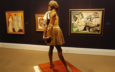 Degas had a passion for sculpting but mostly kept it secret: his one exhibition of a sculpture in 1881 provoked the sort of critical reaction reserved for mindless special effects-driven films today. When Degas died in 1917, his heirs were surprised when they found 150 sculptures. A few of these are now on display in the Art Institute, including that provocative piece from 1881, Little Dancer Aged Fourteen.