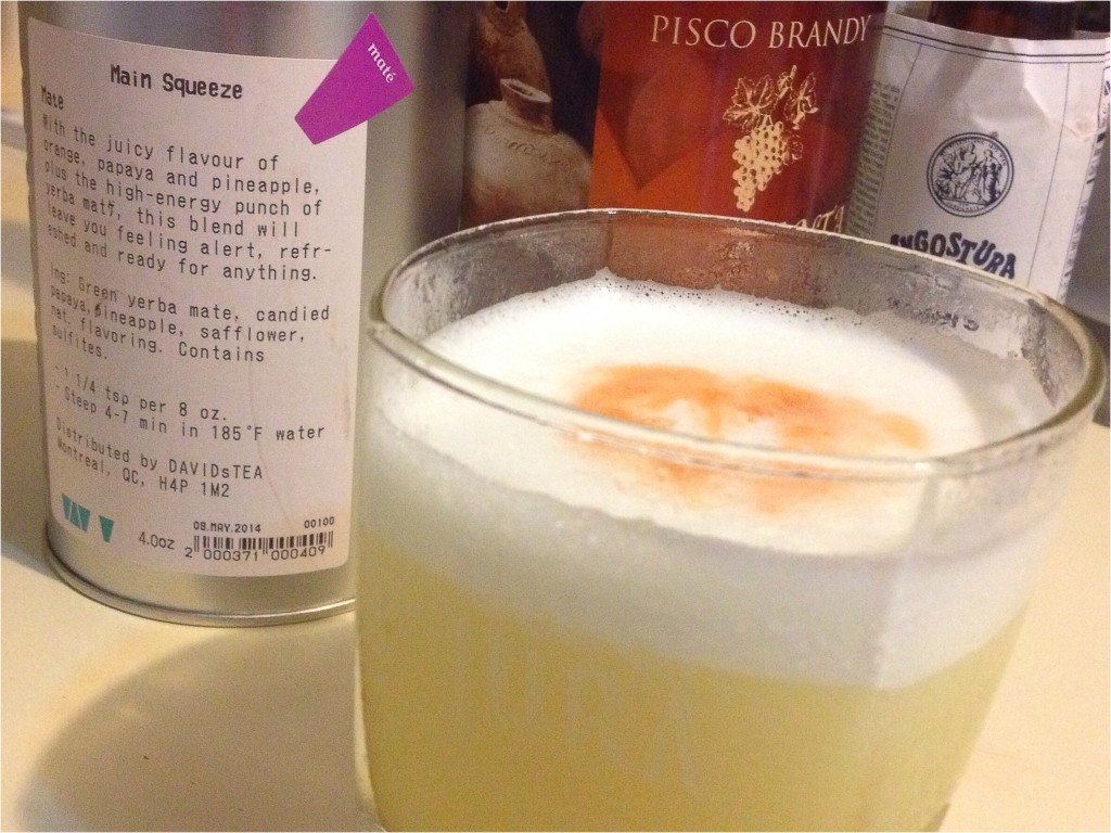 While I’m in the re-imagining mood, it’s a perfect time to revisit the Pisco Sour from the Group B cocktails. If I wanted to turn the drink towards a Uruguayan style, I would look at where I can tweak it. The most obvious place would be to make an infusion either in the spirit or the simple syrup. What to infuse? The obvious choice would be the same think presented in those links: a popular tea-like beverage in Uruguay (and Paraguay & Argentina) known as yerba mate: